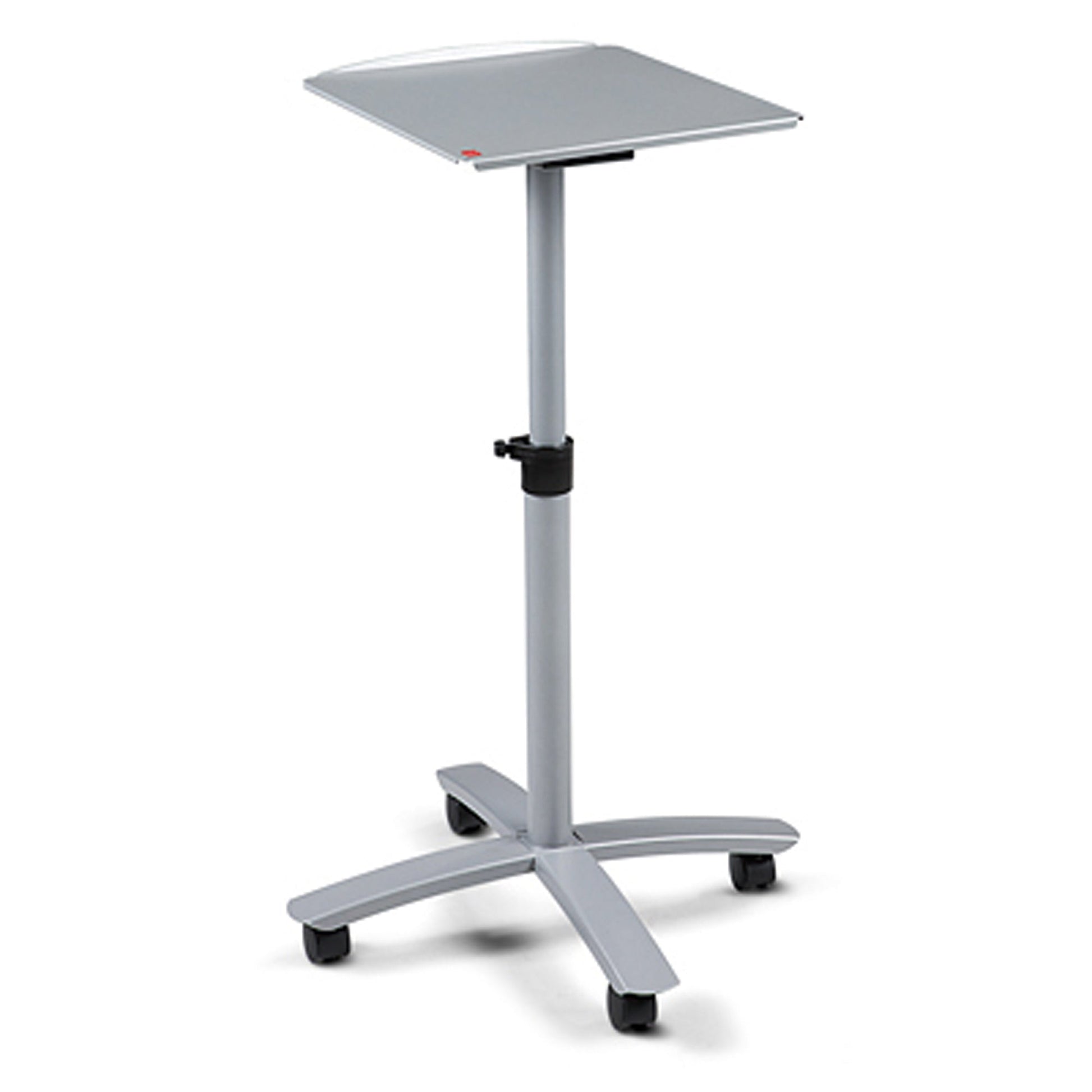 grau/schwarzFür Vorführungen mit DV-Projektor und Laptop. Mit 2 getrennt voneinander einstellbaren Stellflächen, Ablageflächen um 360° drehbar. Mit Neigbarkeitsverstellung. Lenkrollen feststellbar. Tragkraft: je 10 kg.