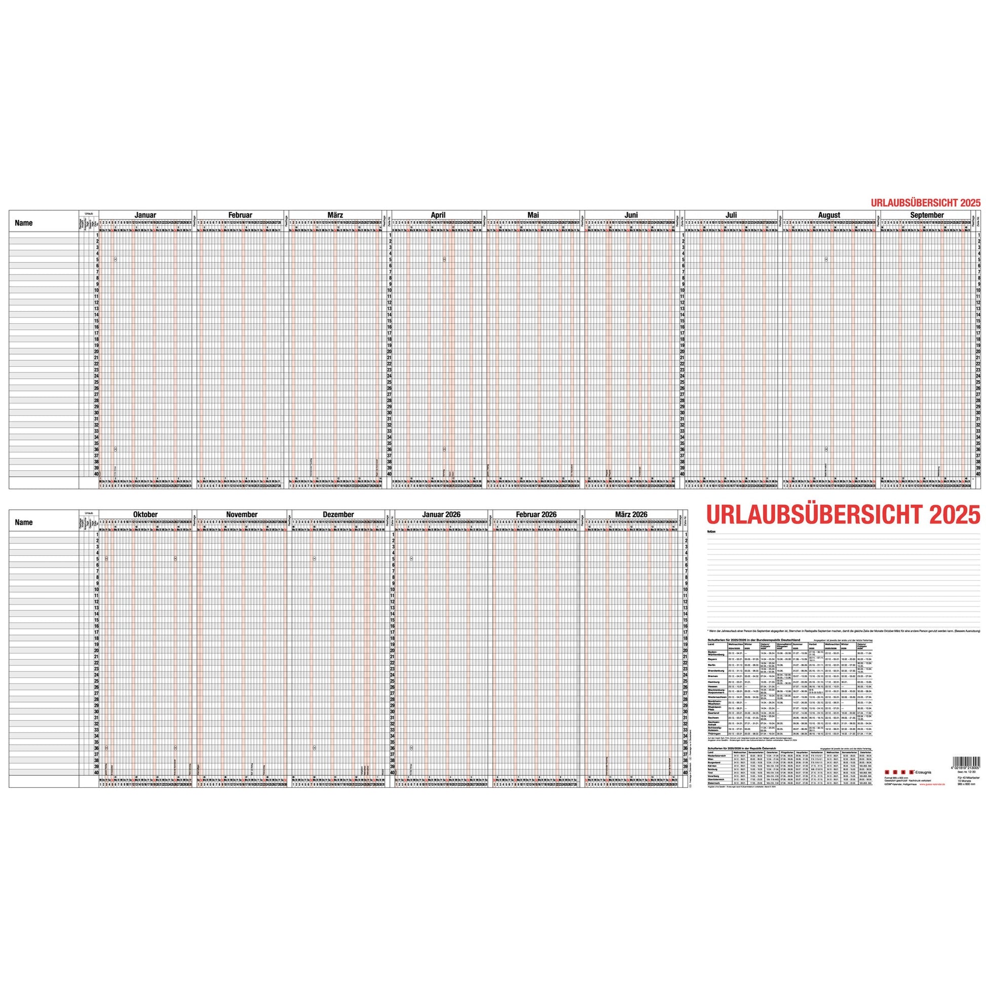 Bezeichnung: GÜSS® Urlaubsübersicht 2026 98,5 x 60 cm (B x H) Karton schwarz/rot