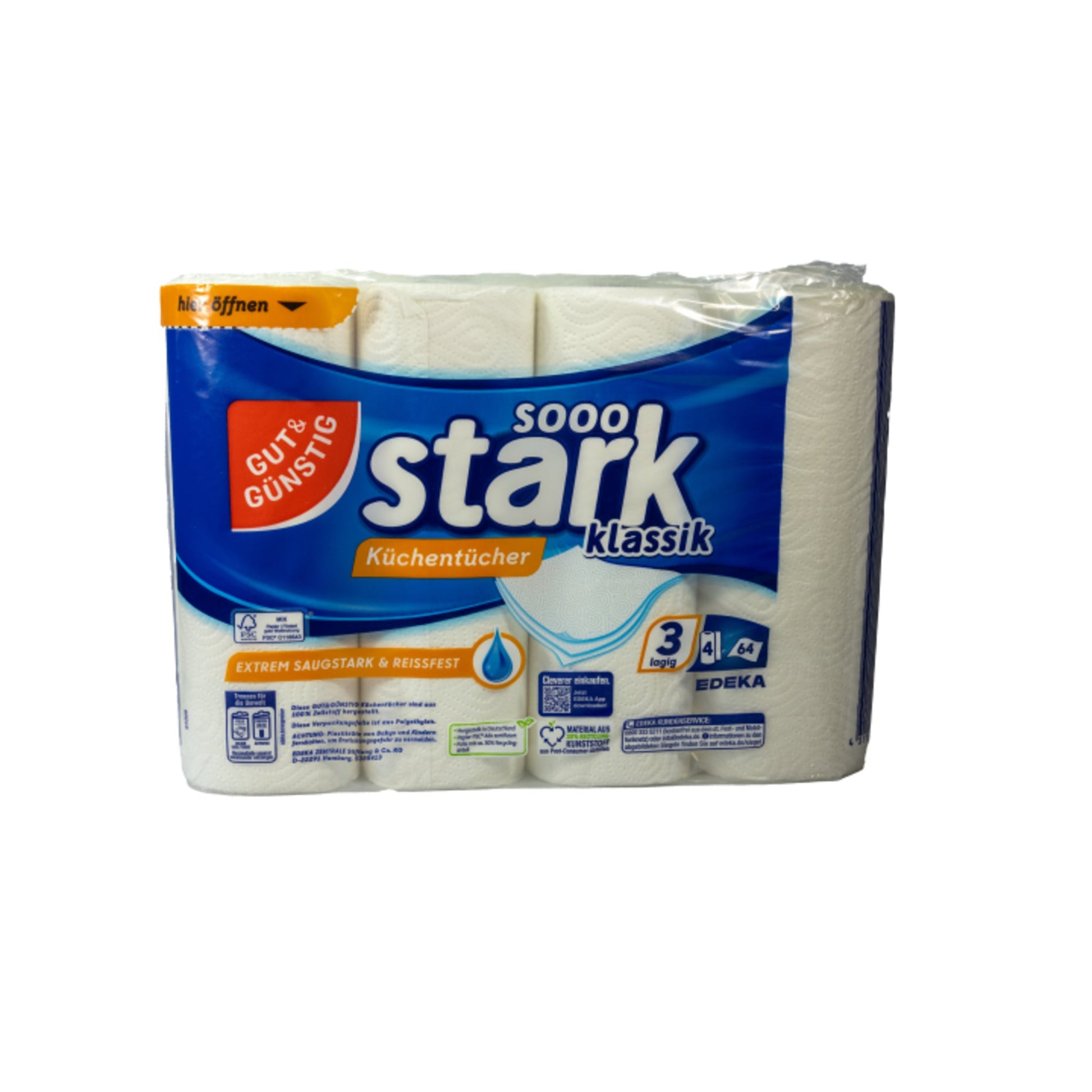 Bezeichnung: GUT & GÜNSTIG Küchenrolle sooo stark Klassik 3-lagig Zellstoff weiß 4 Rl./Pack.