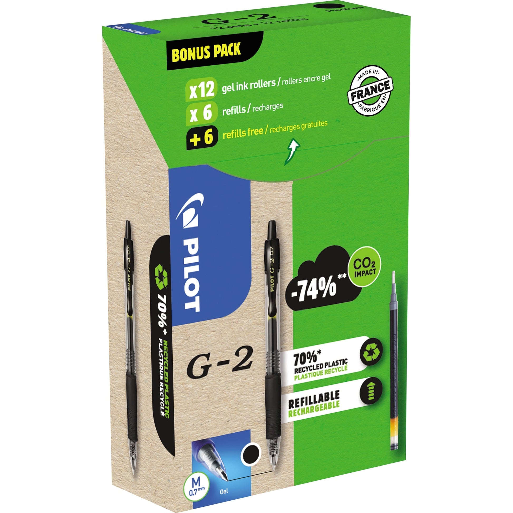 Bezeichnung: PILOT Gelschreiber G2-7 je 12 Gelschreiber, Ersatzminen 0,4mm schwarz inkl. 12 Ersatzminen